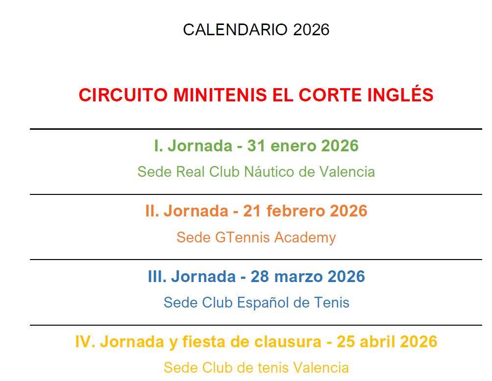 Un año más, nuestro Club Español de Tenis participará en el Circuito de Minitenis de El Corte Inglés, este año es la 4ª edición y se disputará en 4 clubes, con 1 prueba mensual en cada uno de ellos, y el siguiente calendario previsto: