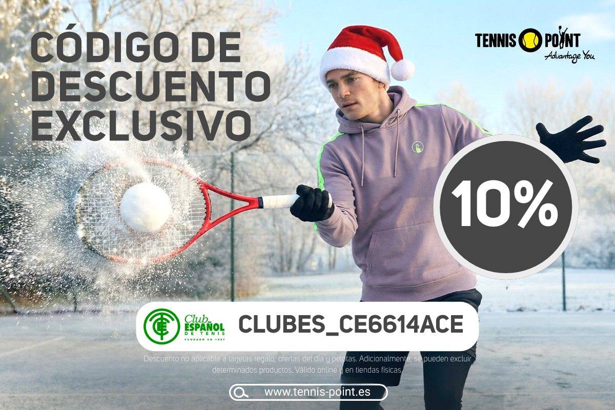 Nos hace mucha ilusión comunicaros que, a partir de ahora, por ser socios del Club Español de Tenis, podéis disfrutar de un 10 % de descuento en todas vuestras compras en Tennis-Point.
